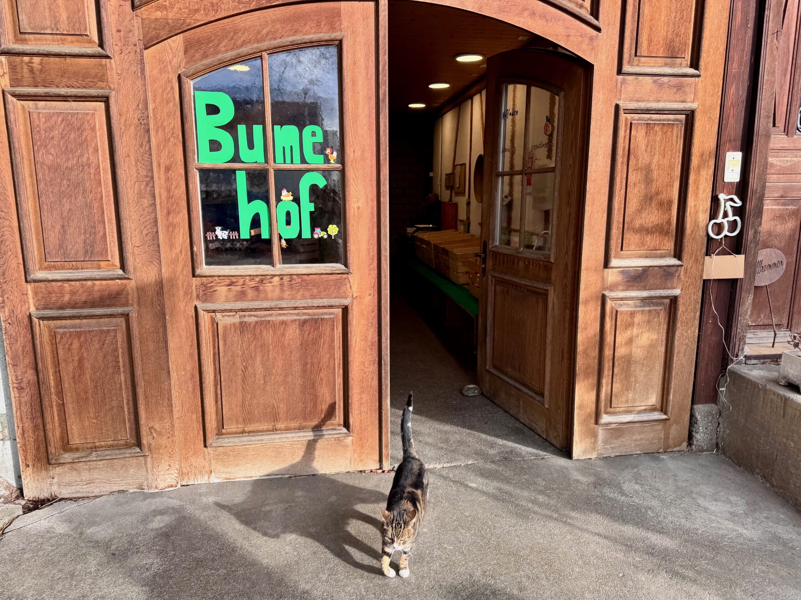 Unsere Hofhunde: Jimmy, 11 Jahre, ein erfahrener Appenzeller-Mischling, der alles im Griff hat. Und Raya, 2 Jahre, eine aufgeweckte Entlebucher Hündin, die noch viel lernen muss. Zusammen halten sie Hof und Tiere auf Trab!